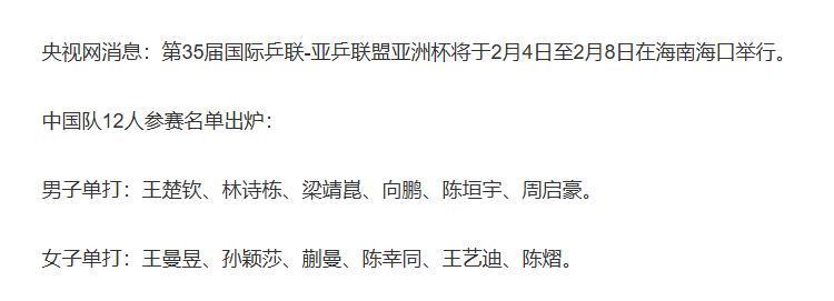 厚积薄发1月26日,国际乒联官网更新海口亚洲杯名单,梁靖崑确认退出,名额由陈俊菘递补。