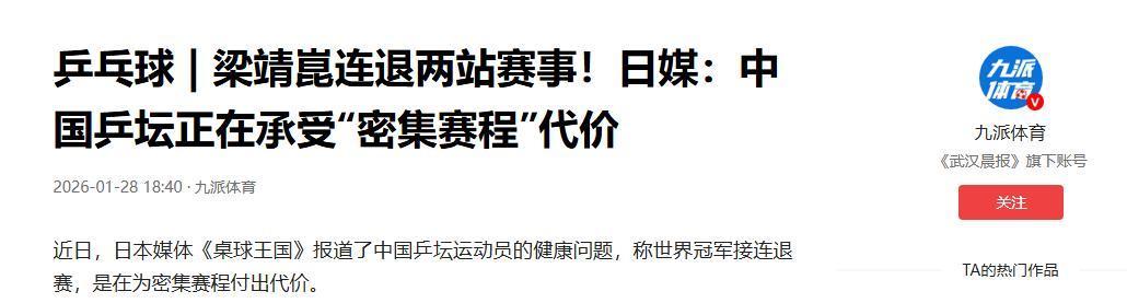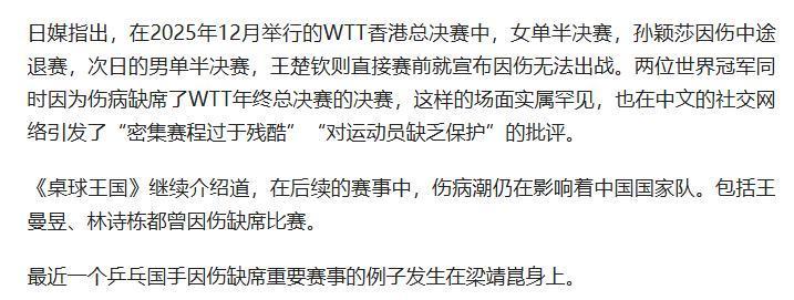 日本媒体《桌球王国》近日发文,直指中国选手正在受到“密集赛程”的影响。