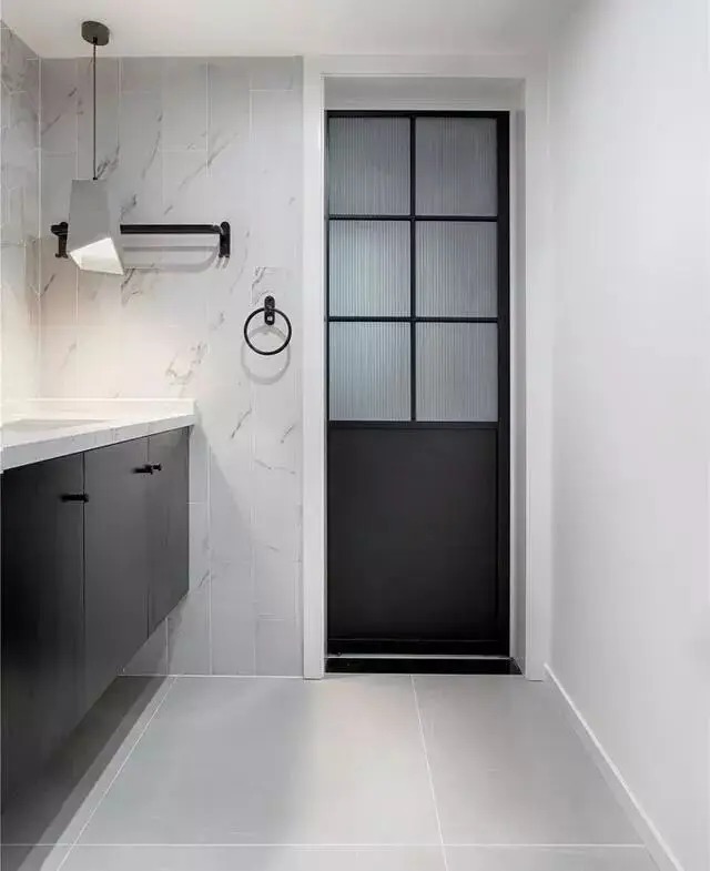 1、半透明磨砂玻璃或长虹玻璃:卫生间门选用半透明磨砂玻璃,可借助外部光线透入卫生间。当下流行的长虹玻璃也是很好的选择,颜值高又能解决光线问题。